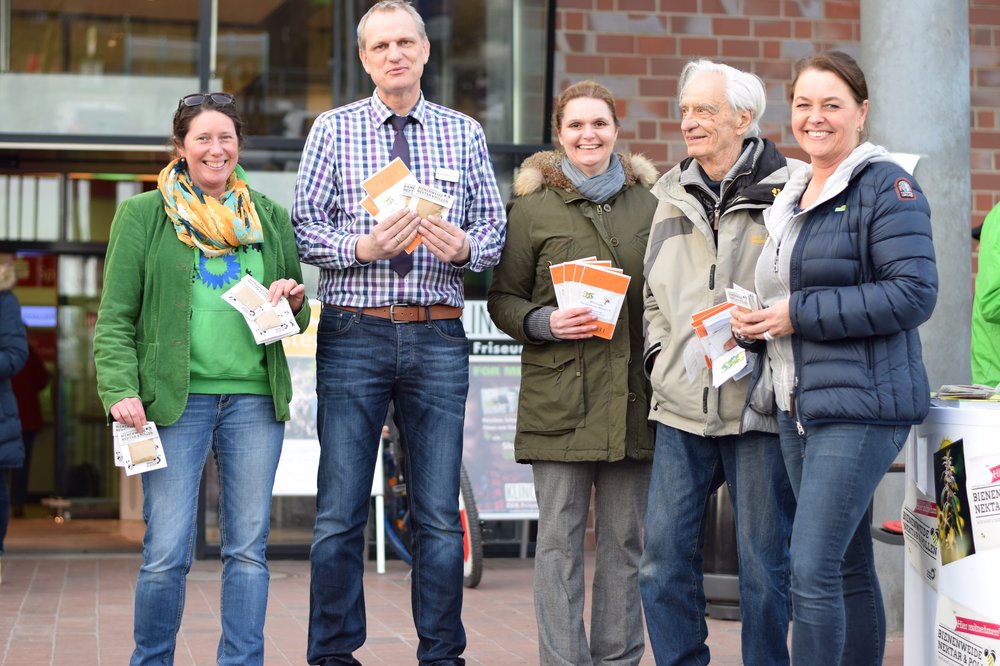 Kommunalpolitik und BUND-Mitglied Ingo Lükemann verteilten vor famila 500 Samenmischungen mit Wildblumen.